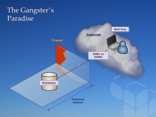 Consider, for example, a scenario, where a database makes a JDBC or ODBC connection directly available to clients outside of the corporate firewall: