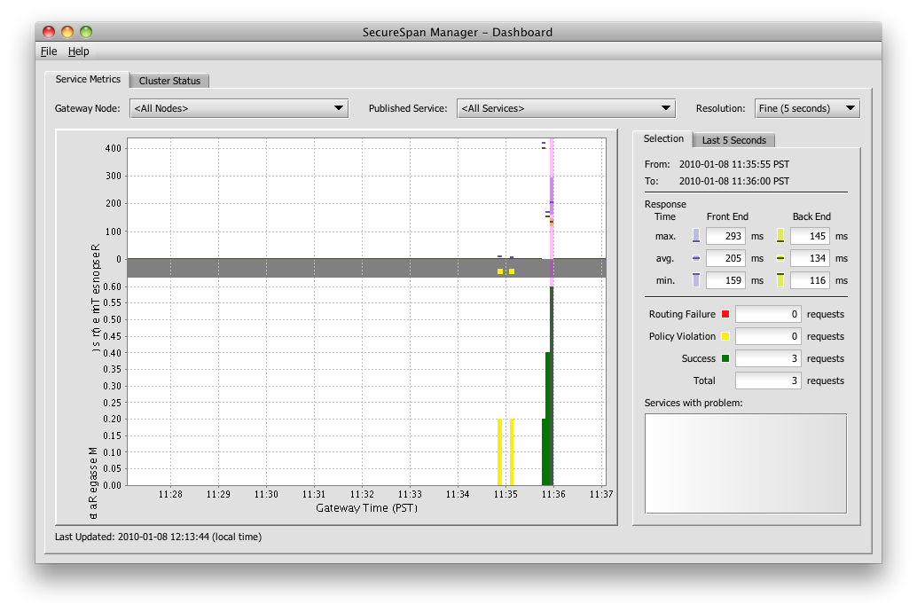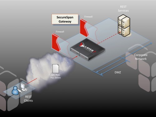 Suppose you have a REST-based service that you would like to publish to the world, but you are concerned about access control, confidentiality, integrity, and the risk from incoming threats. We have an answer for this: SecureSpan Gateway clusters, deployed in the DMZ, give you the ability to implement run time governance across all of your services:
