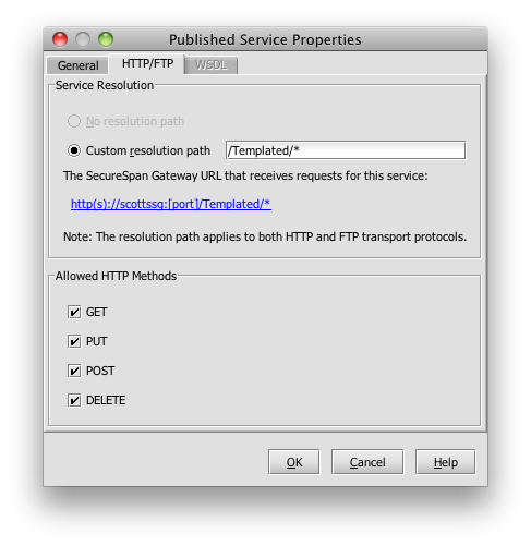 I’ll bind this policy to a particular URI range on my SecureSpan gateway virtual instance. This happens to be running with an HTTP listener on port 8080 on my Macbook Pro: