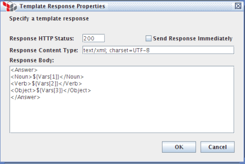 It places the content of the expansion variables Noun, Verb, Object into Vars[1] , Vars[2] and Vars[3] respectively. The next two assertions in the policy simply audit the resulting variables into the SSG audit subsystem; this can sink to cluster storage, or go off box. Finally, the policy populates a template XML document with the contents of the variables and echos this back to the original sender:
