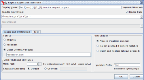 Now let’s walk through the policy in detail. The first assertion uses a regular expression to parse the URI.: